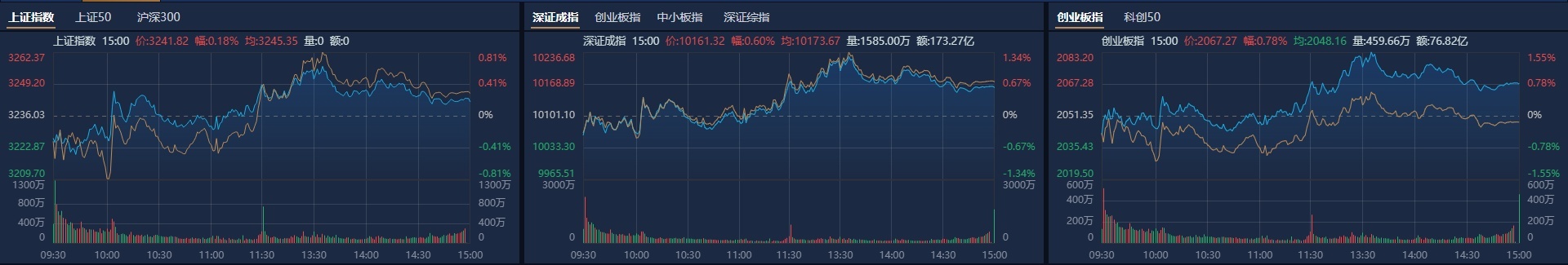 市场全天冲高回落,三大指数小幅上涨。南财金融终端显示民间股票配资,截至收盘,沪指涨0.18%,深成指涨0.6%,创业板指涨0.78%。
